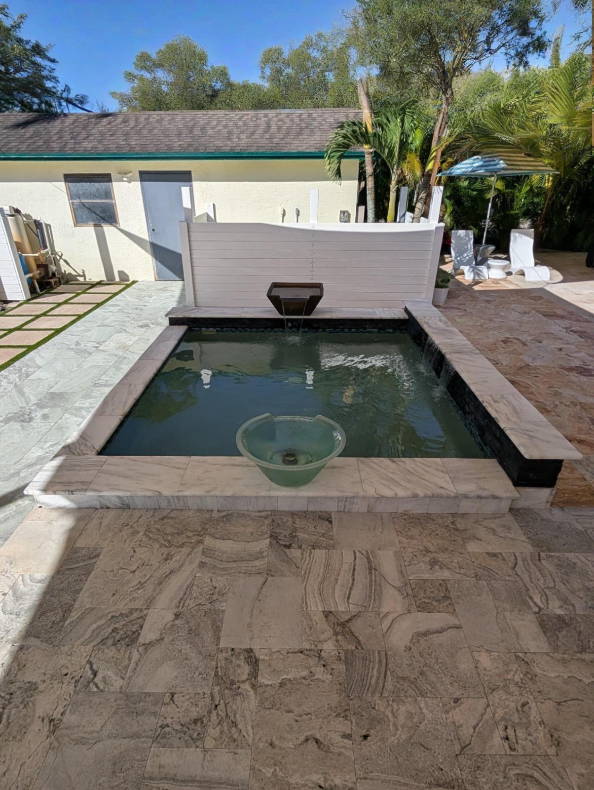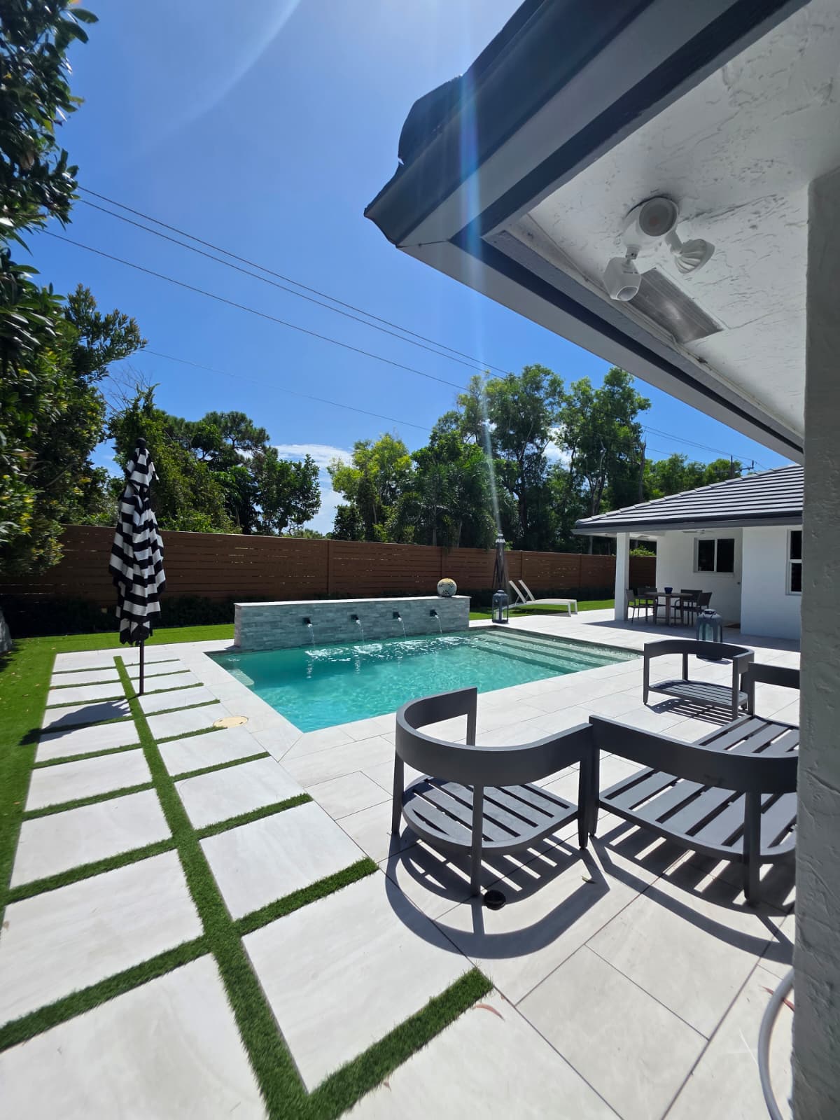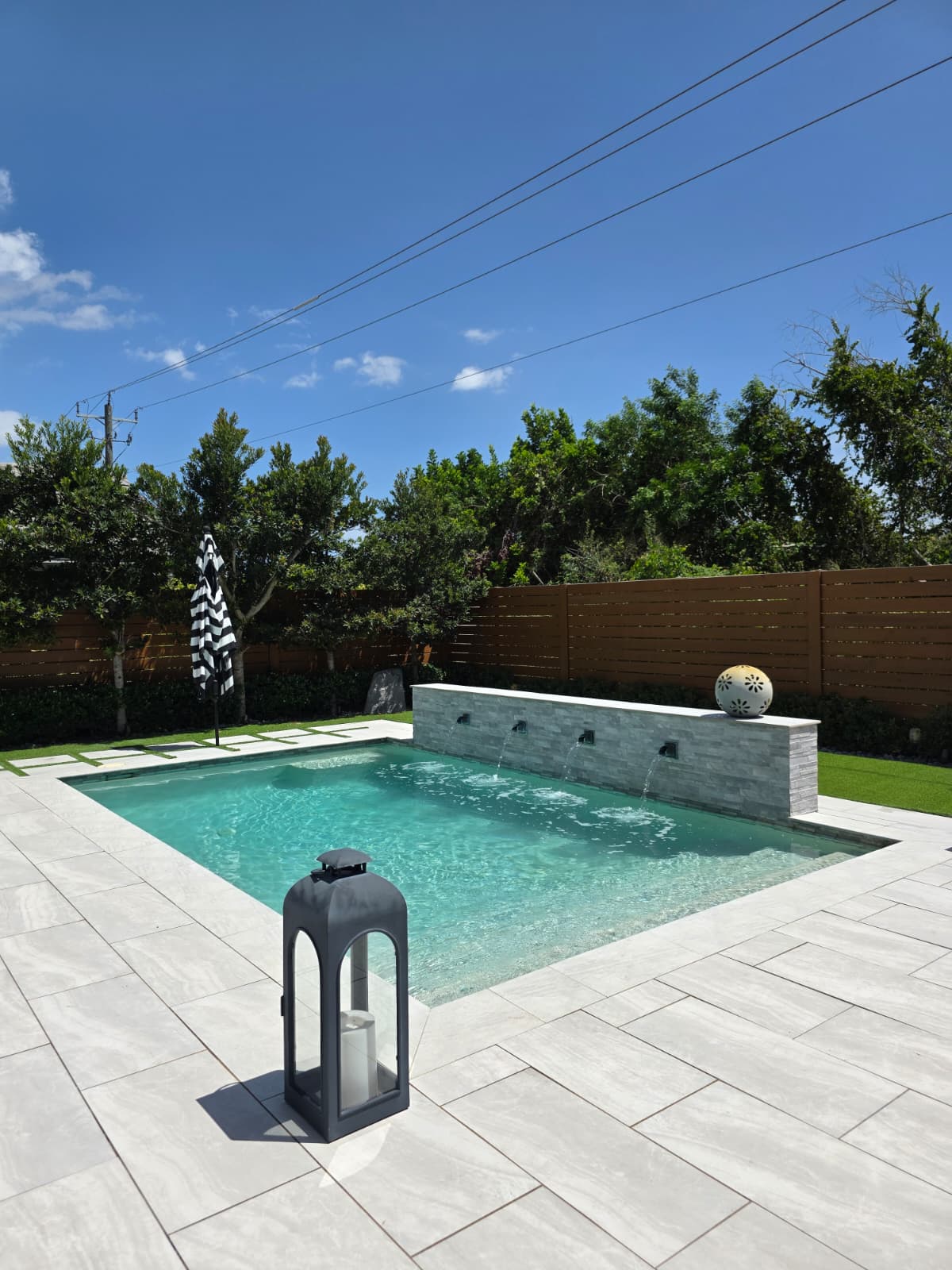 Enhance your pool with soothing waterfalls and modern water accents.